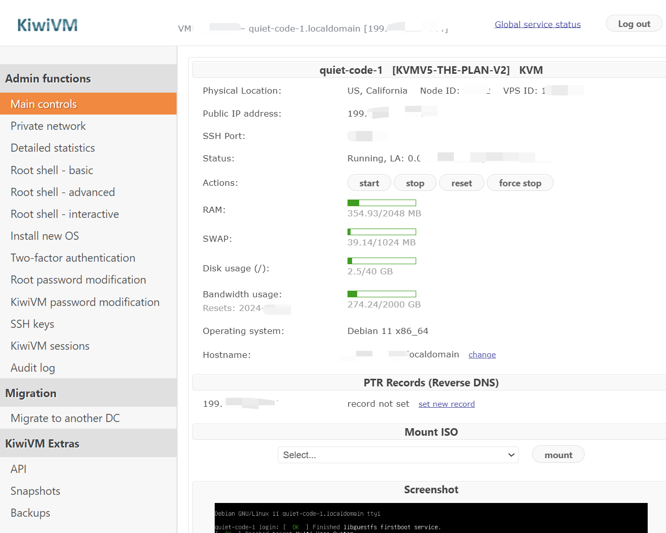 瓦工 The Plan V1 | KiwiVM 控制面板