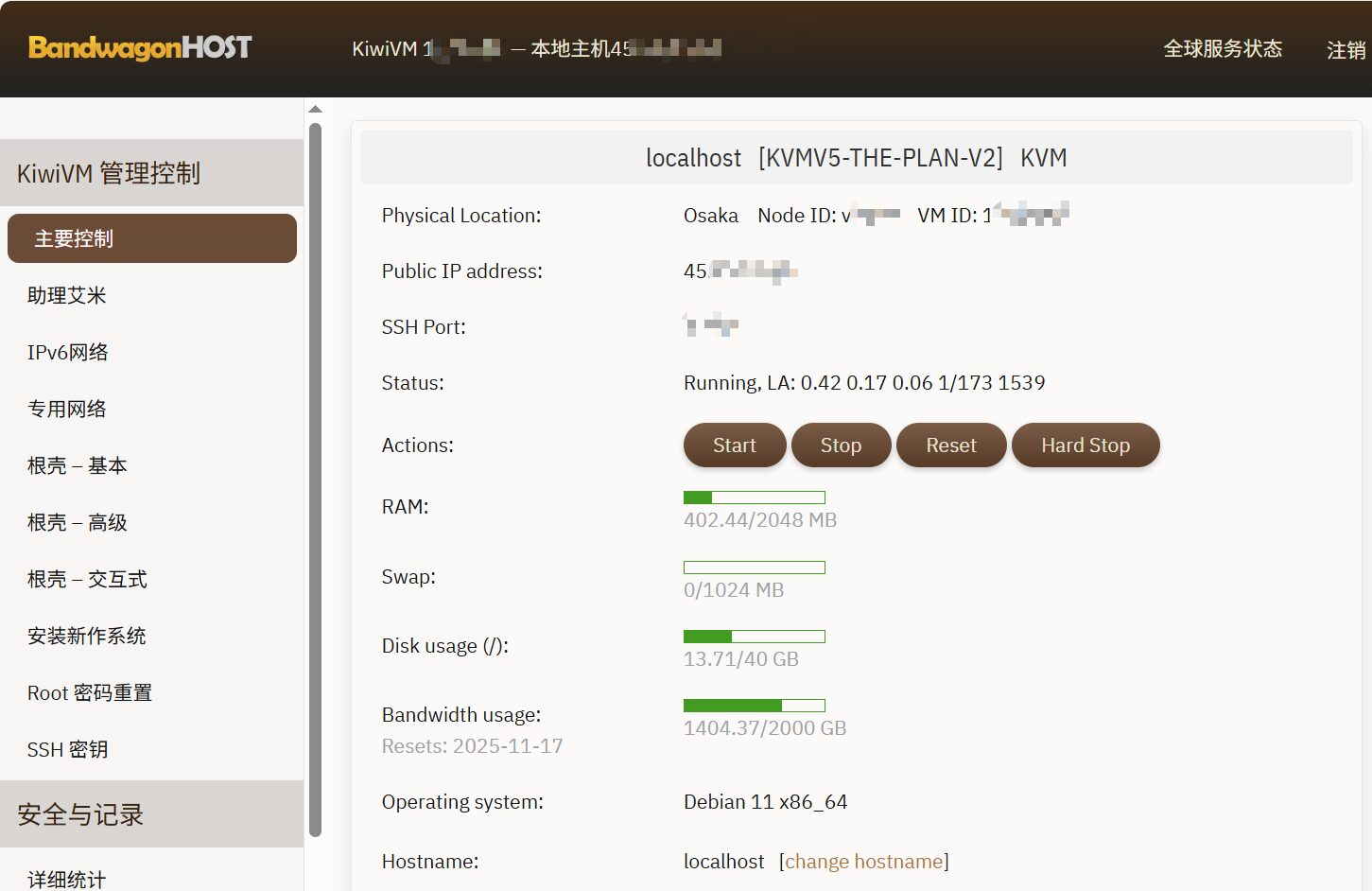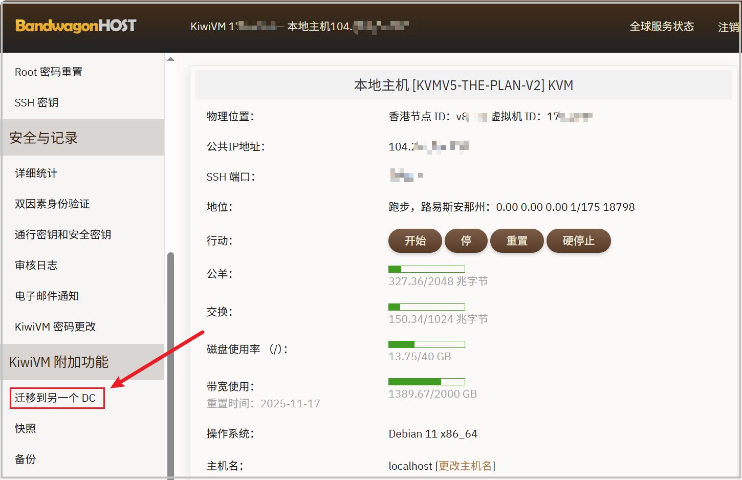 ☐如果你不知道你的 kiwivm 面板帐号和密码的话,那么建议通过 https://bandwagonhost.com/services “我的服务器”管理面板直接登录