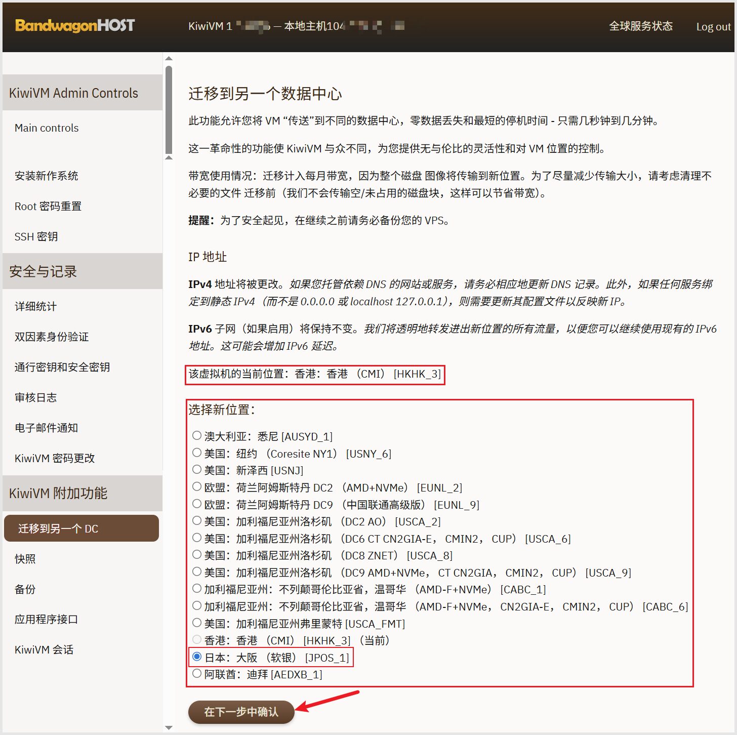 现在我打算将该 VPS 迁移到 日本:大阪 (软银) [JPOS_1] 机房,在前面打上标记
