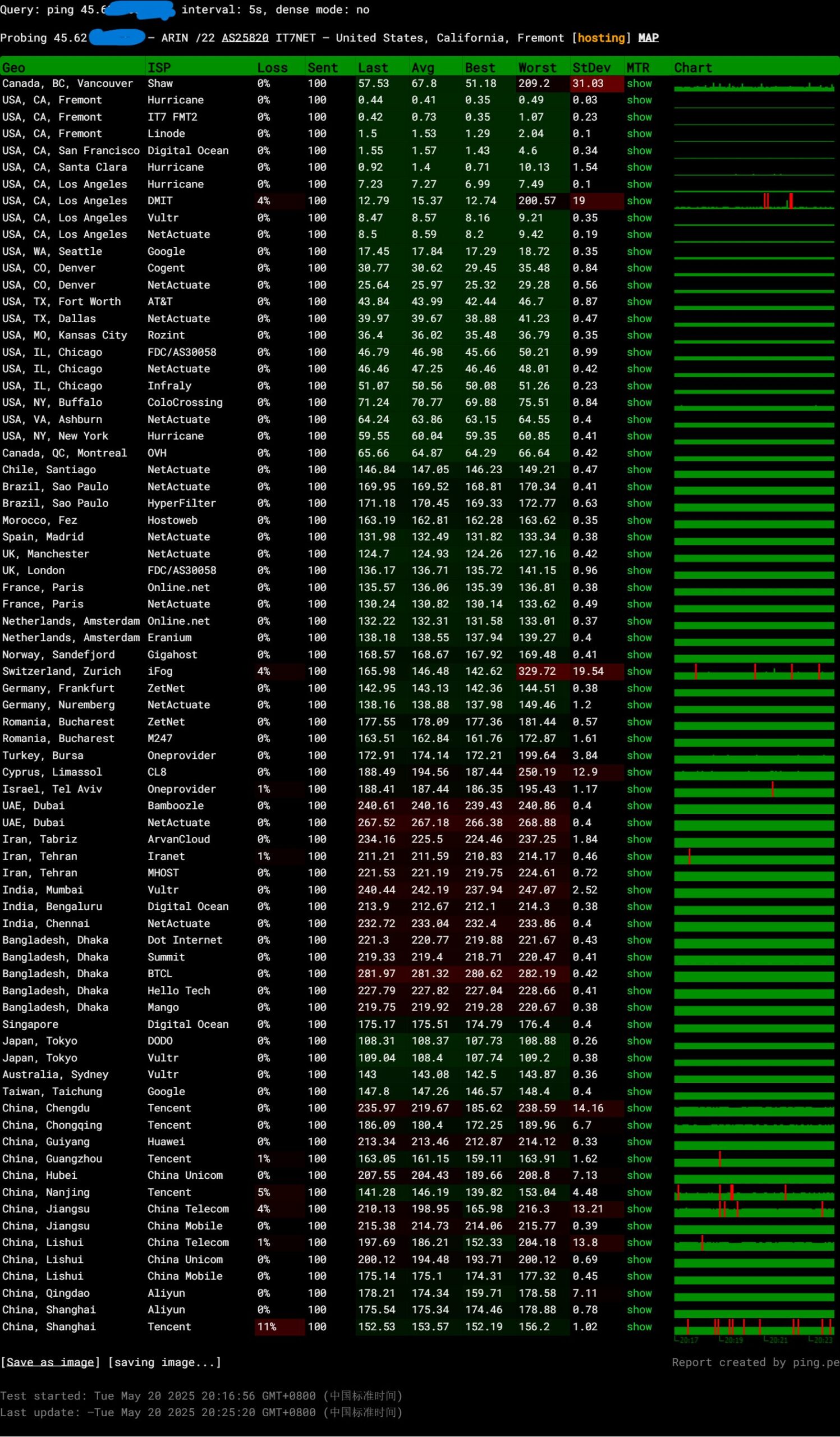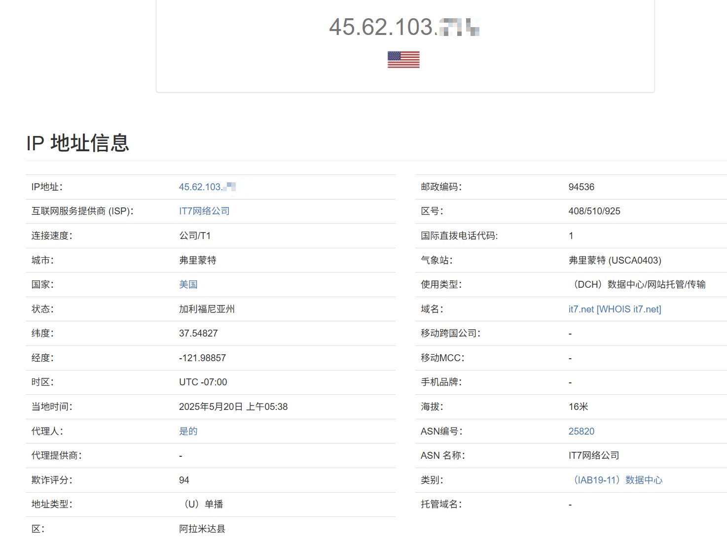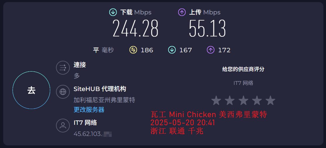 ●机房: 美国加利福尼亚州弗里蒙特 ( ❗ 非优化线路(普通HE回程),机房不可迁移)